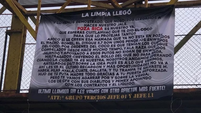 “La limpia llegó y lo hemos demostrado que nosotros llegamos a hacer nuestro jale. Poza Rica es nuestro ya. ¿Qué esperas, Cuitláhuac? ¿Qué te dio el ‘Coco’ para que lo protejas tanto? ¿A poco sí se creen esa mam*da que ya no está en Poza Rica ‘El Wacho’?”, pudo leerse en la parte inicial del mensaje.