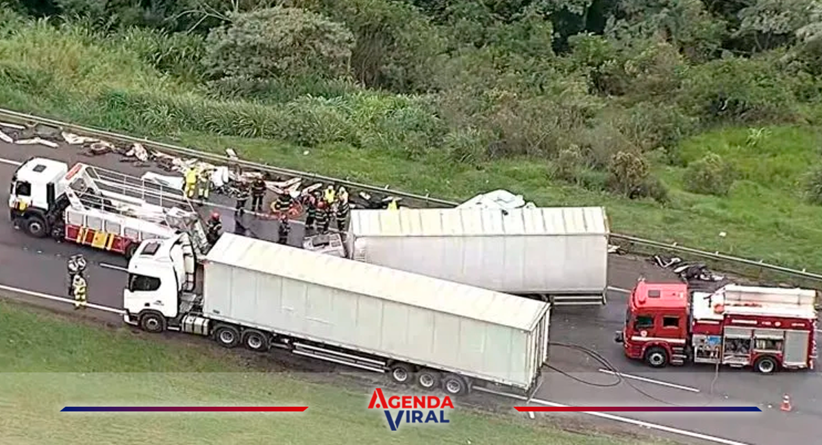 De acuerdo con el reporte, el accidente ocurrió alrededor del kilómetro 55, en la localidad agroindustrial de Jundiaí, al chocar dos camiones que alcanzaron a otro vehículo detenido a un costado de la vía con trabajadores de señalización, quienes fallecieron en el lugar, mientras que otros cinco empleados que realizaban labores al lado del camino fueron atropellados.
