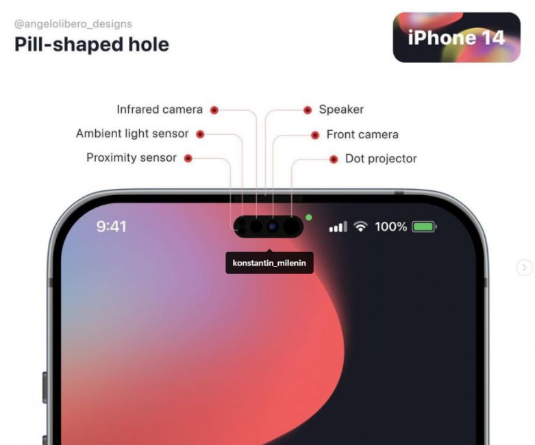 El iPhone 14 tendrá un agujero en la pantalla que destaca por su tamaño. Principalmente porque Apple ha utilizado el diseño de la tablet para poder albergar todos los sensores necesarios y así Face ID funcione tan bien como los modelos anteriores.