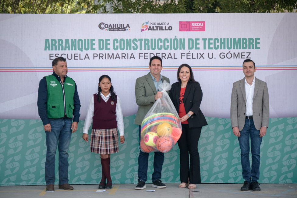 Saltillo, Coahuila de Zaragoza.- Javier Díaz González, alcalde de Saltillo, arrancó los trabajos de construcción de una techumbre en la Escuela Primaria Félix U. Gómez de la colonia La Herradura III, que vendrá a beneficiar a más de 500 alumnas y alumnos de este plantel educativo.