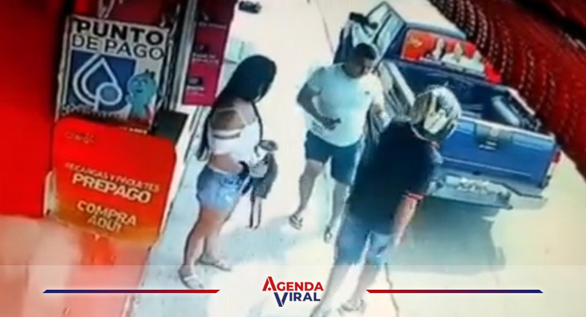En una grabación de una cámara de videovigilancia, de poco más de minuto y medio, se puede observar el momento en el que el sujeto asalta a un hombre y una mujer afuera de un comercio de Ecuador. Tras apoderarse de las pertenencias de valor, el sujeto huye del lugar en su motocicleta a toda velocidad.