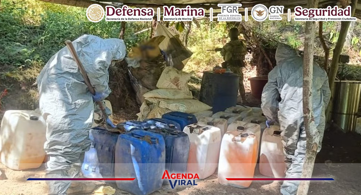 En un operativo efectuado en el municipio de Badiraguato, se aseguró un área utilizada para la fabricación de drogas sintéticas, donde fueron confiscados 6 mil litros de precursores químicos. De acuerdo con el comunicado oficial, estas acciones derivan del reforzamiento de labores de inteligencia e investigación para debilitar la estructura del narcotráfico en el estado.