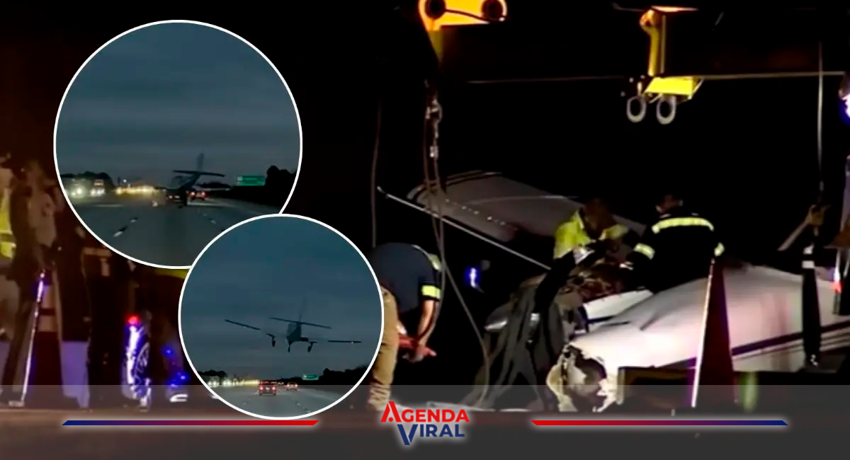 Florida, Estados Unidos — Un impactante video que circula en redes sociales muestra el momento en que una avioneta realiza un aterrizaje de emergencia y termina impactando a un vehículo que circulaba por la autopista I-95 de Florida.