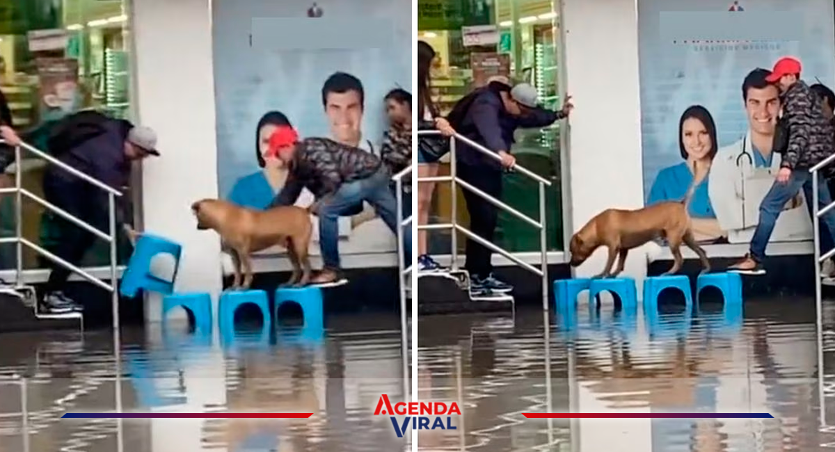 Una imagen de dos personas construyendo un puente improvisado con bancos azules para que un perrito pudiera cruzar se volvió viral en Twitter, inspirando a la gente a tener una nueva fe en la humanidad.