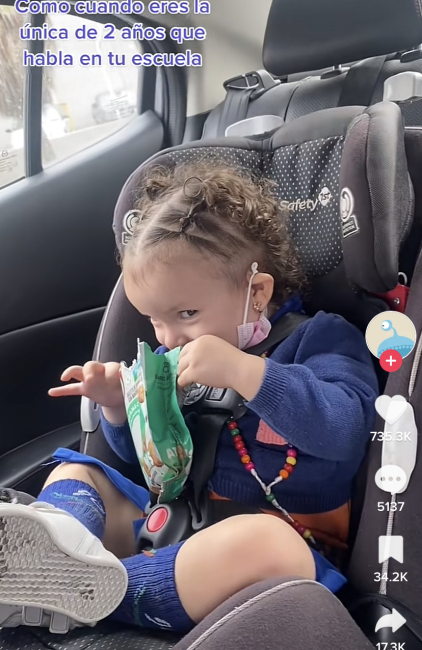 El video que se encuentra nombrado “como cuando eres la única de 2 años que habla en la escuela”, ya cuenta con más de cinco millones de reproducciones y miles de comentarios de mamás que contaron la edad en la que sus hijos aprendieron a hablar.