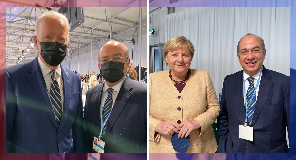 El expresidente de México, Felipe Calderón, acudió a la Conferencia de las Naciones Unidas sobre el Cambio Climático COP26 que tiene lugar en Glasgow, Escocia, en donde líderes mundiales mantienen diversos encuentros en torno al cambio climático.