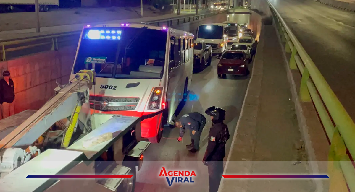 El incidente fue reportado alrededor de las 6:00 horas, cuando la unidad quedó detenida en la salida del túnel Nazario Ortiz Garza hacia el periférico, lo que obligó a la intervención de elementos de Tránsito Municipal para tomar conocimiento de la situación.