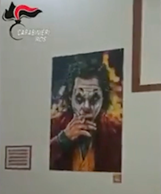 En el hogar del líder mafioso se pueden observar cuadros que muestran al Joker, personaje de la serie de Batman, y a Al Pacino en su papel de “El padrino” en la segunda parte de la exitosa saga que retrató la operación de la mafia italiana asentada en Estados Unidos.