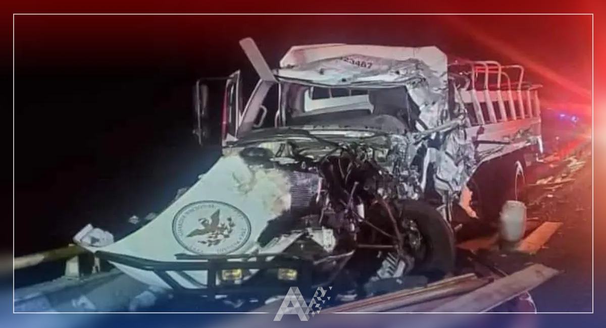 Oaxaca, Oax.- La noche de este martes, en el kilómetro 210 de la Autopista Tehuacán-Oaxaca, muy cerca de la caseta de cobro de Huitzo, un camión de la Guardia Nacional con elementos a bordo chocó contra un tráiler, que presuntamente se salió de control tras presentar fallas mecánicas.