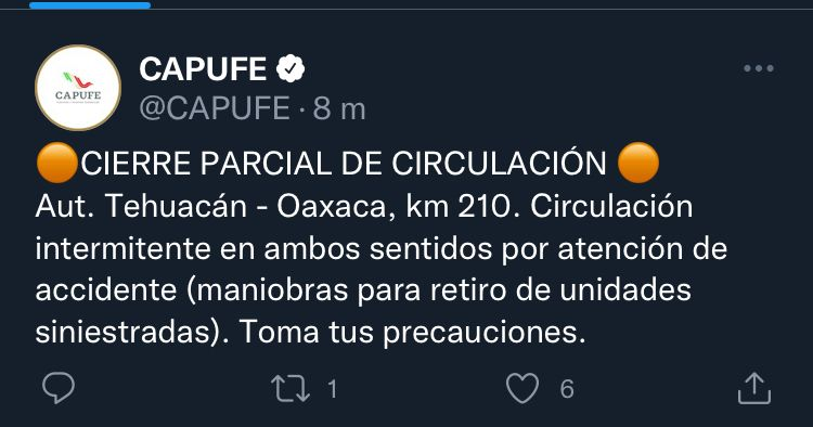 Después de dos horas de estar cerrada la circulación vial, alrededor de las 22:40 horas comenzó la circulación intermitente por ambos sentidos informó vía Twitter Caminos y Puentes Federales (Capufe).