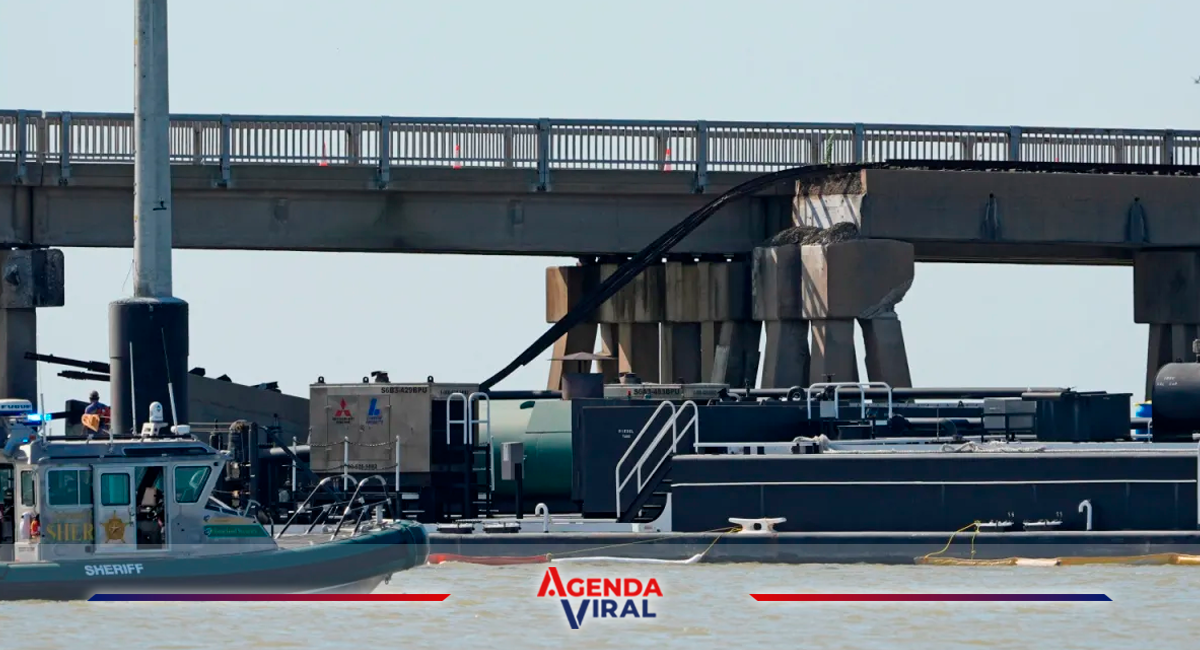 La barcaza de 321 pies, que tiene capacidad para contener 30.000 barriles de petróleo, transportaba 23.000 barriles, lo que equivale a casi 966.000 galones, cuando se estrelló contra un pilar del puente Pelican Island Causeway el miércoles, dijo Rick Freed, vicepresidente del operador de barcazas Martin Marine, en la conferencia de prensa.