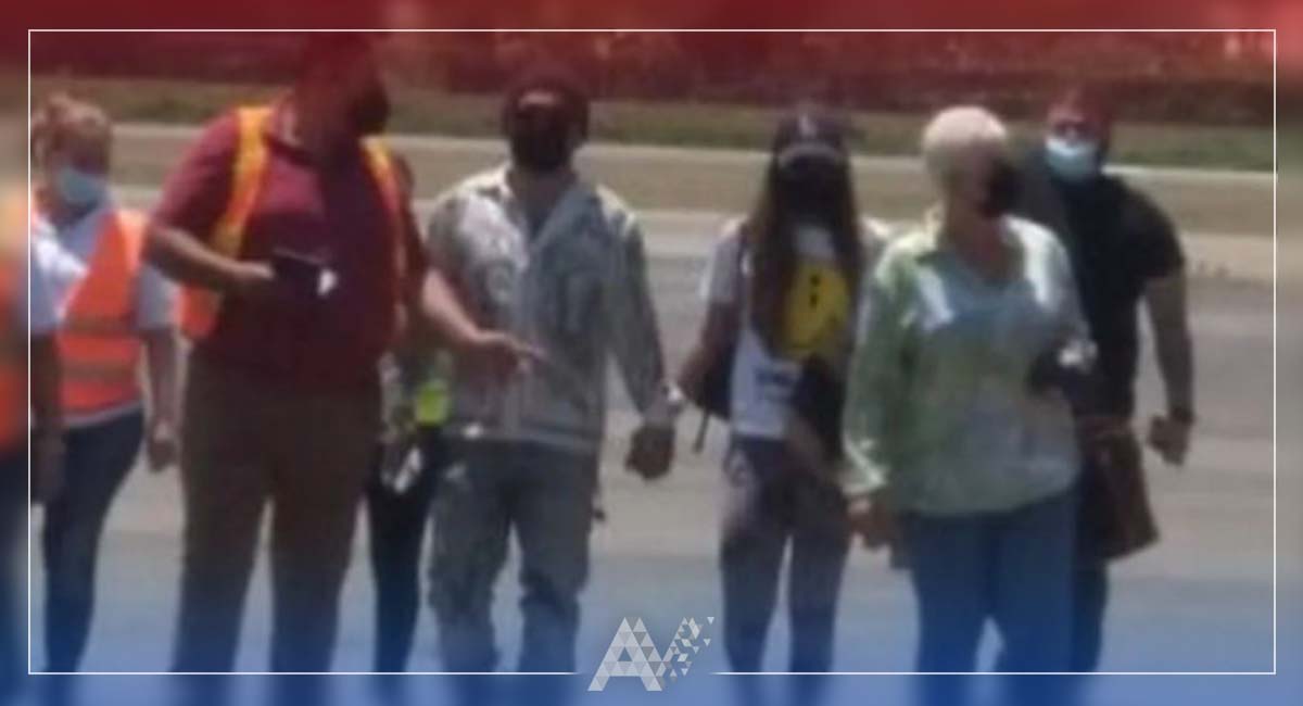 Christian Nodal bajó de un avión de la mano de una joven que los fanáticos identificaron como Mariana García, modelo que ha participado en sus videos.