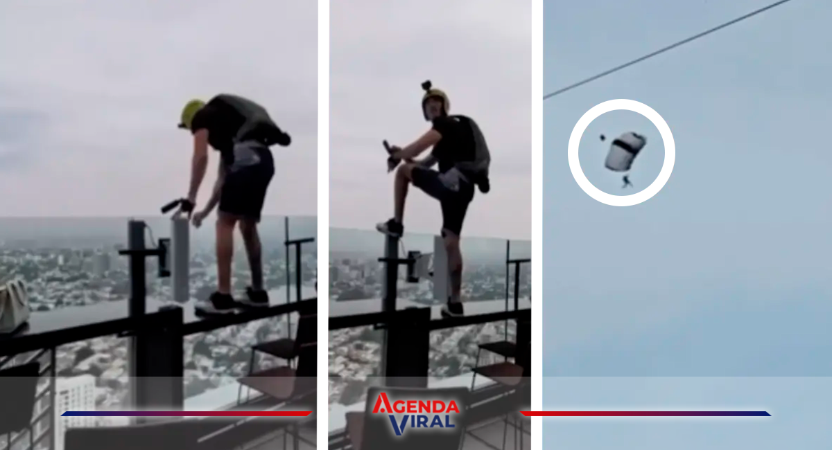 El sujeto descendió y aterrizó en las inmediaciones de la Glorieta de los Caballos, conocida como Las Jícamas, sin que se reportaran lesiones. El momento fue captado en video y difundido ampliamente en redes sociales, donde provocó reacciones divididas entre críticas por el riesgo generado y comentarios que calificaron el acto como impactante.
