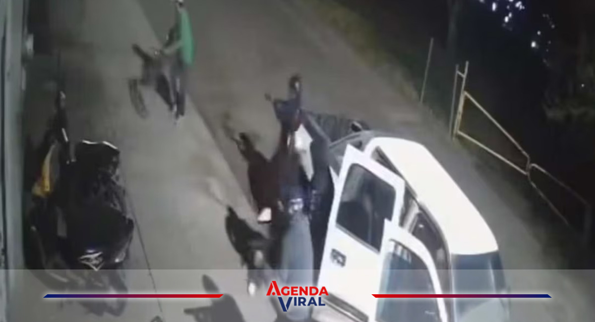 Cámaras de seguridad captaron el momento del ataque. En las imágenes se observa a los agresores realizando múltiples detonaciones antes de regresar al vehículo y huir de la escena.