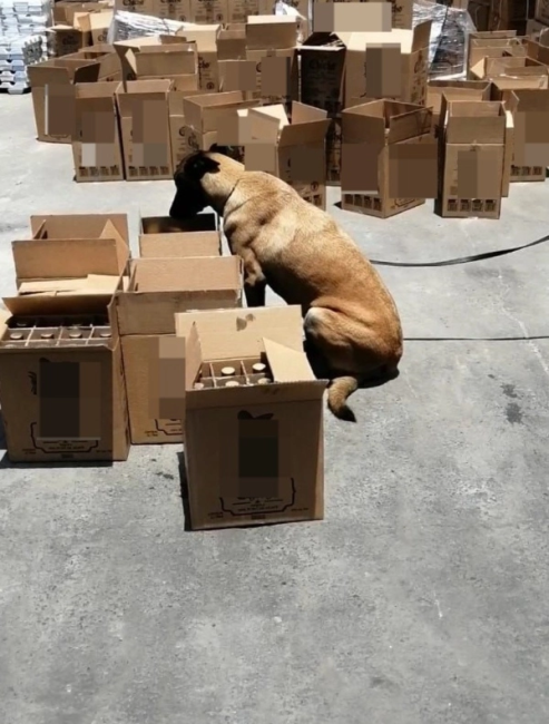 Por lo anterior, se ordenó una revisión más profunda con un binomio canino, el cual indicó que el tequila presuntamente tenía droga.