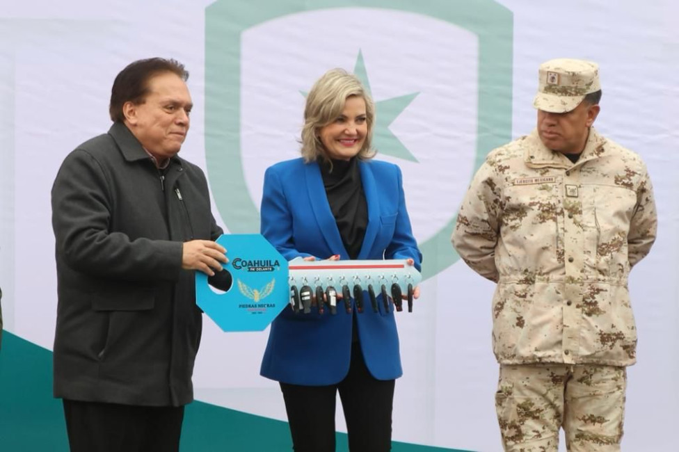 En representación del mandatario estatal, el Fiscal General de Coahuila, Gerardo Márquez Guevara, acompañó a la alcaldesa de Piedras Negras, Norma Treviño, a la entrega de más equipamiento para la Policía municipal, así como la obra del Centro de Comando y Control.