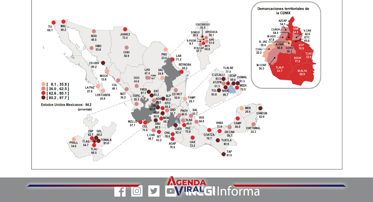 En diciembre de 2022, el 64.2 % de la población de 18 años y más consideró que es inseguro vivir en su ciudad.
