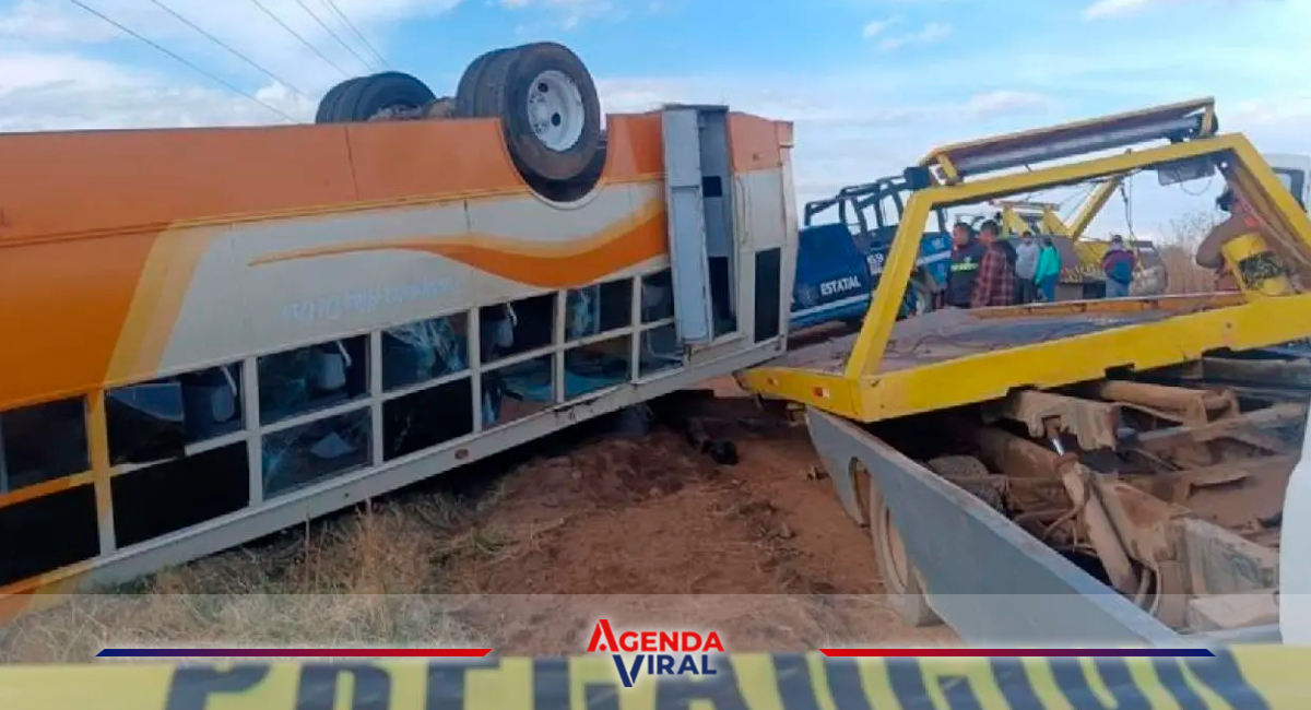 La unidad siniestrada pertenece a Transportes Alas de Oro, con número económico 6, y trasladaba a estudiantes de la secundaria técnica 25 “J. Jesús Larios Guzmán”. Según los primeros reportes, el vehículo salió de la cinta asfáltica y terminó volcado, provocando un fuerte impacto que dejó múltiples víctimas.