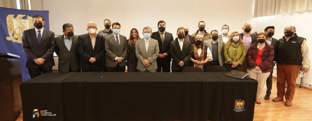 El convenio fue signado por el rector de la máxima casa de estudios, Salvador Hernández Vélez, el director de la Facultad de Arquitectura, Juan Antonio Espinoza Cruz y el titular de la Secretaría de Vivienda y Ordenamiento Territorial Estatal, Enrique Martínez y Morales, y como testigos, el coordinador general de Vinculación e Innovación Productiva de la UAdeC, Octavio Pimentel Martínez y el coordinador de la Unidad Saltillo, Julio Saucedo Zul.