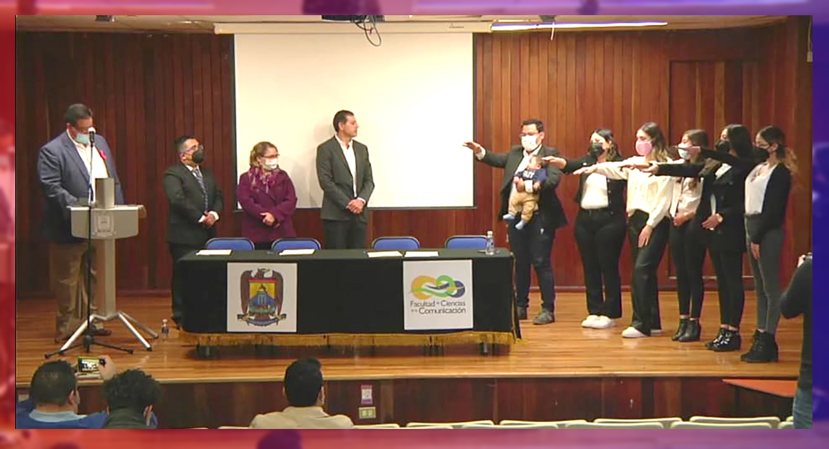 Las autoridades tomaron protesta a los estudiantes que conformarán el Capítulo de Emprendimiento de la FCC COPARMEX: en el rubro de Responsabilidad Social, Brissey Patiño, en Participación Social, Lizeth Galván, en Relaciones Internacionales, Abryl Adame, en Comunicación, Andrea Nogales, en Creatividad Emprendedora, Mónica Valdez, en Relaciones Públicas, Brenda Esquivel y en Coordinación General, Marco Juárez.