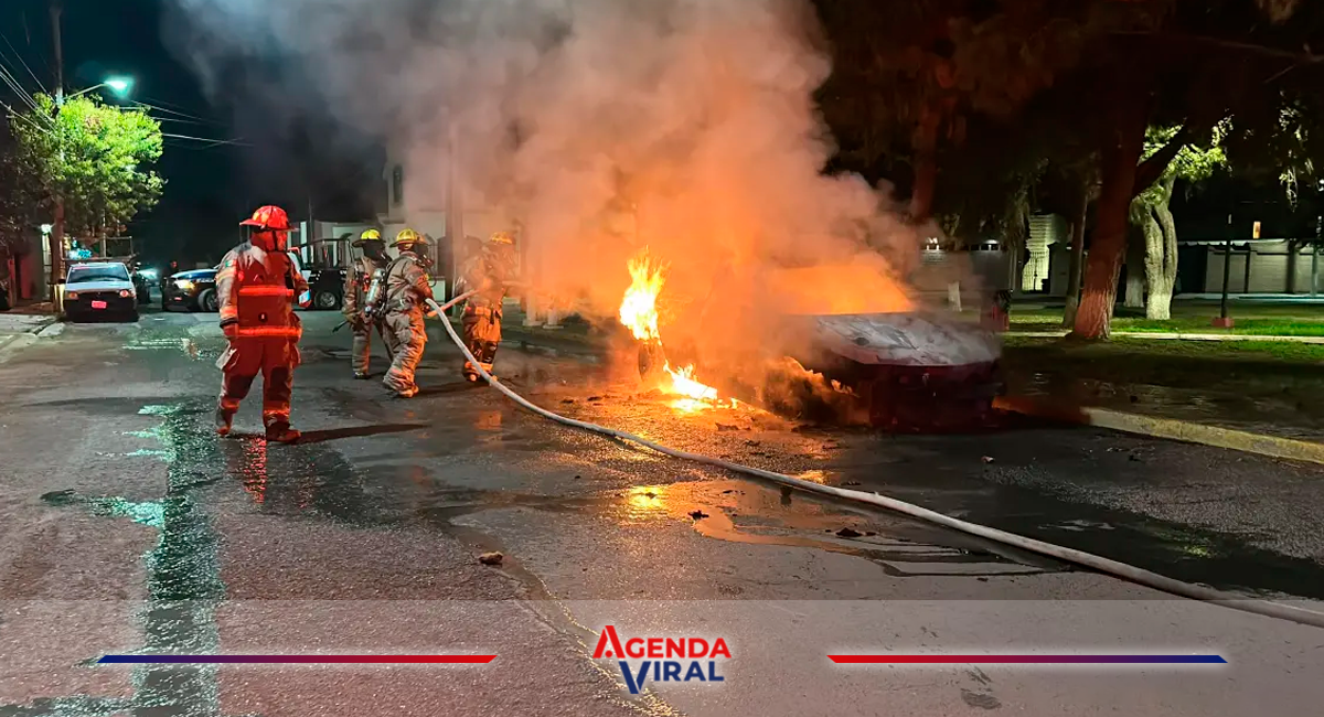 Saltillo, Coahuila — Un automóvil quedó completamente calcinado la noche del miércoles en la colonia Doctores, luego de que presuntamente una falla eléctrica provocara que la unidad comenzara a incendiarse mientras estaba estacionada, en Saltillo.