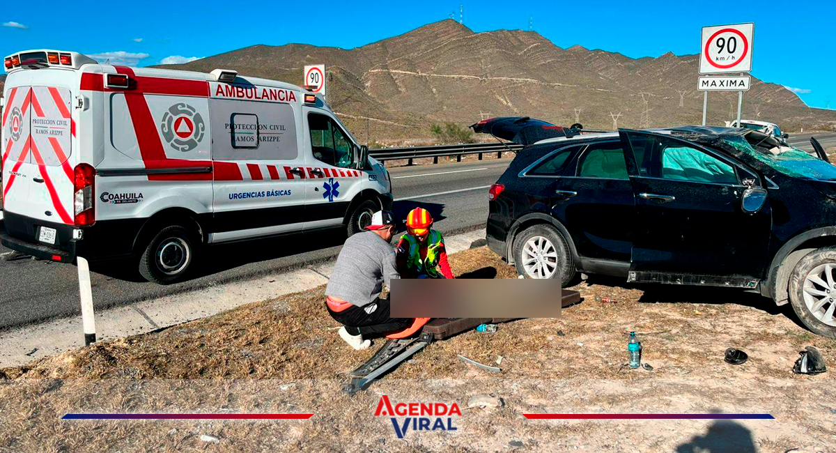 Coahuila — Una familia que regresaba de un viaje a Real de Catorce vivió momentos de gran preocupación al sufrir una volcadura en la carretera Saltillo–Monterrey, a la altura del kilómetro 34, durante la tarde del domingo.