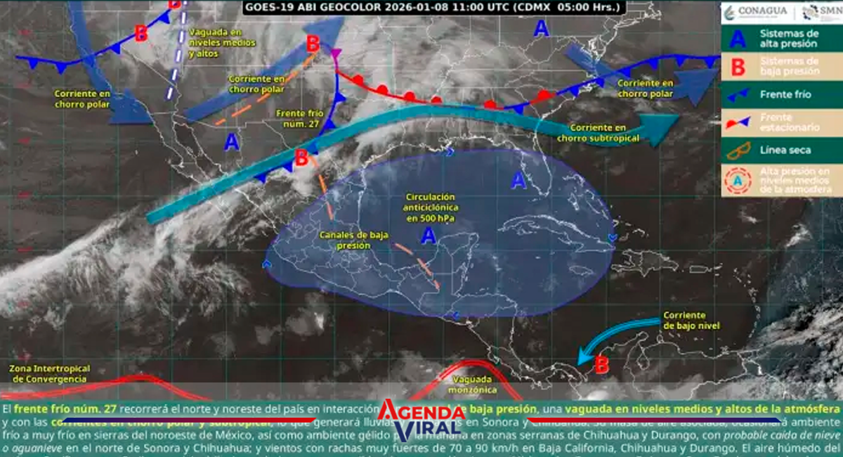 Saltillo, Coahuila. — La Secretaría de Gobierno, a través de la Subsecretaría de Protección Civil del Estado, informó que el frente frío número 27 ingresará al noreste del país, afectando de manera directa a Coahuila, con condiciones invernales severas que incluyen marcado descenso de temperatura, fuertes rachas de viento y probabilidad de nieve, aguanieve o lluvia engelante en diversas regiones.
