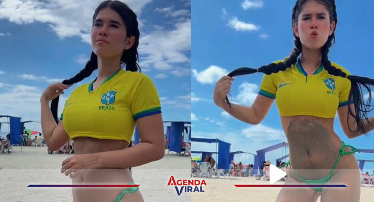 En los videos podemos ver a la guapa influencer de 20 años bailando en una playa ante la mirada de decenas de turistas, usando en todo momento la playera de la selección de Brasil.