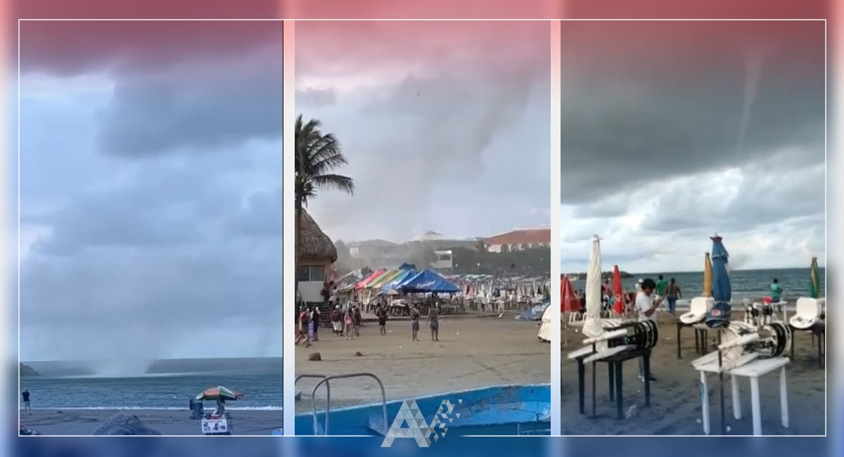 La tarde de este jueves una tromba marina que se desarrolló frente al puerto de Veracruz e ingresó a la playa Villa del Mar como tornado, causó pánico entre los turistas y comerciantes que se encontraban en el lugar.