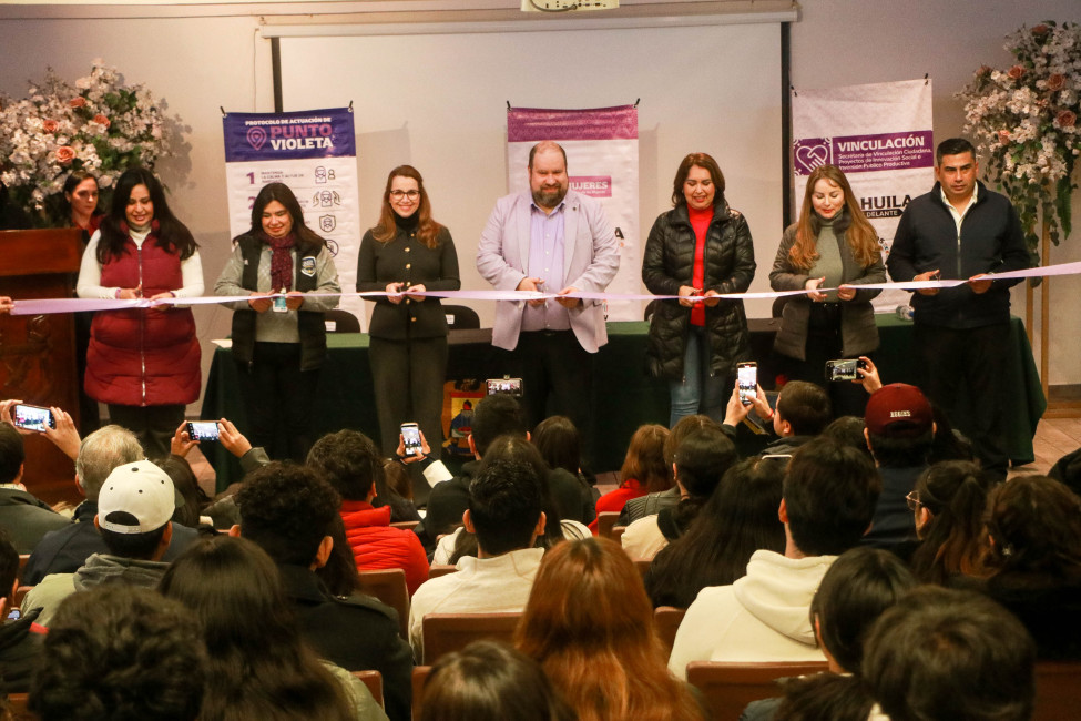Por su parte, la titular de la Secretaría de las Mujeres, Mayra Lucila Valdés González, señaló que la violencia contra las mujeres debe atenderse de manera integral y coordinada, ya que los Puntos Violeta brindan orientación, acompañamiento y canalización inmediata a mujeres en situación de riesgo, y reconoció el compromiso de la UAdeC con la seguridad y el bienestar de las mujeres universitarias.