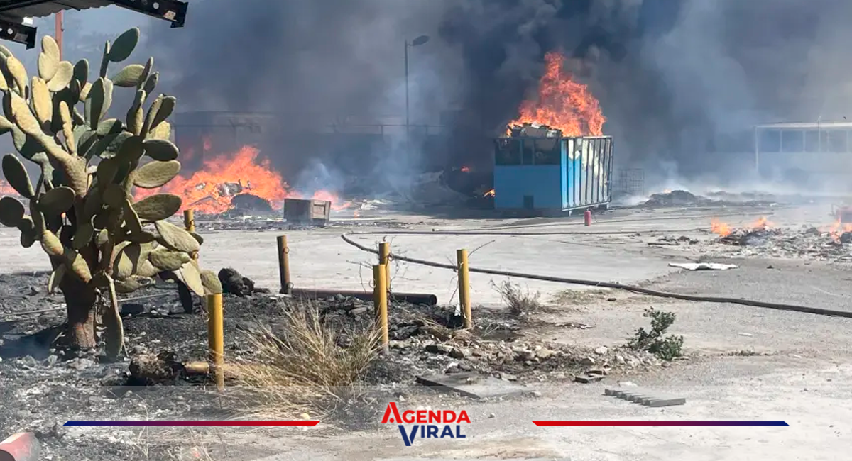 Saltillo, Coahuila — Un incendio registrado la tarde del lunes consumió la recicladora “Resal”, ubicada sobre el bulevar Fundadores, en Saltillo. El fuego habría iniciado alrededor de las 14:30 horas en un barranco cercano y se propagó rápidamente hacia contenedores de cartón y papel, avivado por fuertes ráfagas de viento.