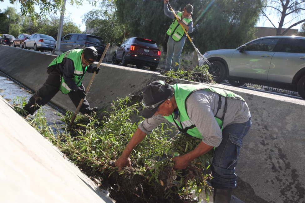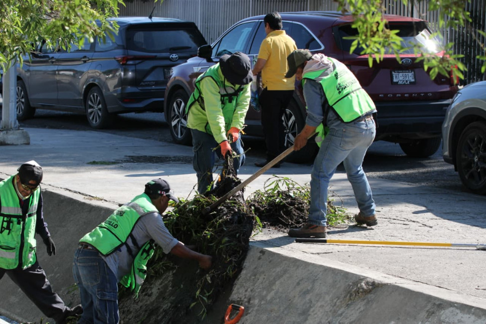 De manera simultánea, personal de “Aquí Andamos” atendió con acciones de limpieza integral, retiro de basura y desechos orgánicos el canal pluvial que corre paralelo a la calle Magisterio, entre las calles David Berlanga y Paseo de la Reforma, a la altura de la Ciudad Deportiva “Francisco I. Madero”.