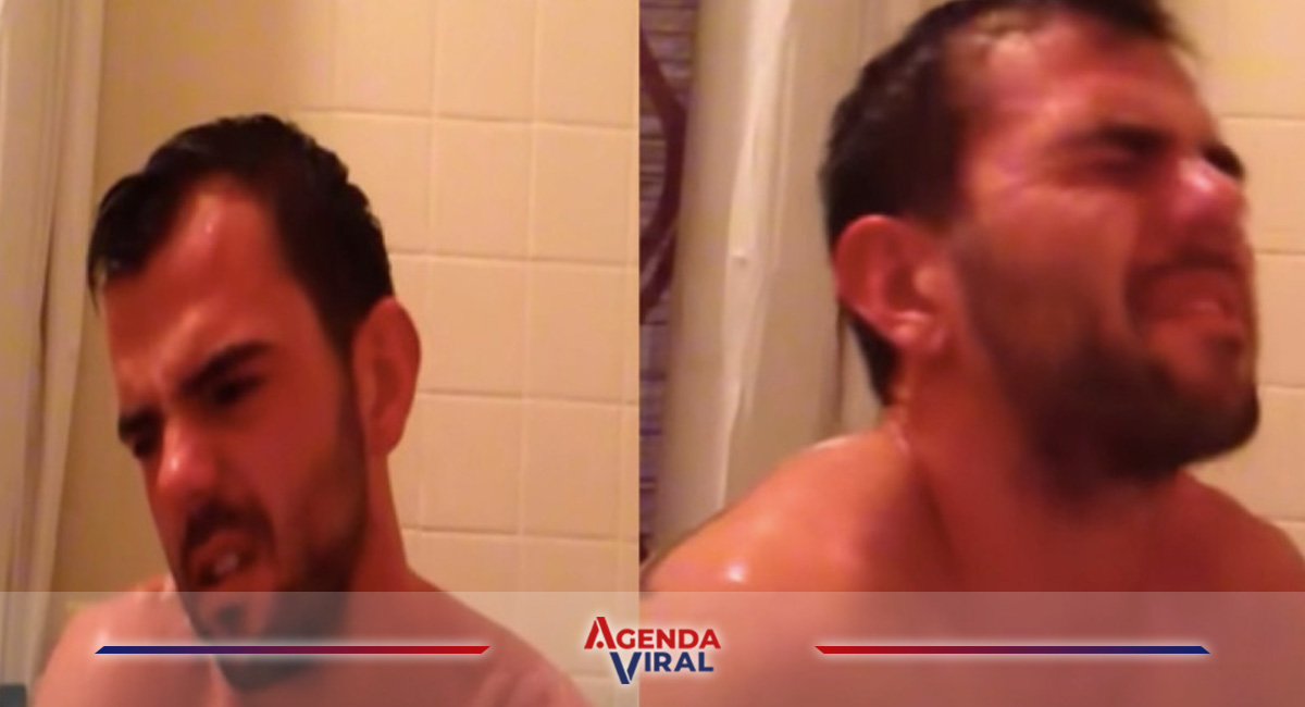 En el video se observa como se toca el cuello y el pecho. Alain, que no entendía lo que le pasaba, decidió salir de la ducha lentamente.