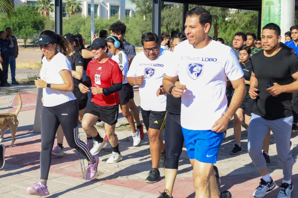 TORREÓN, Coahuila.- El rector de la Universidad Autónoma de Coahuila, Octavio Pimentel Martínez, participó en la carrera 5K, organizada por el Comité del Proyecto “Actívate Lobo” de la Facultad de Ciencias Políticas y Sociales (FCPyS) en Ciudad Universitaria Campus Torreón, a la que asistieron 200 corredores.