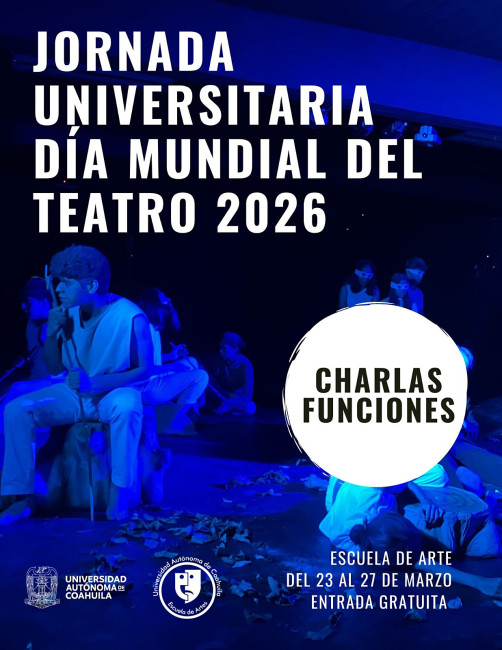 La Jornada Universitaria del Día Mundial del Teatro se lleva a cabo del 23 al 26 de marzo en la Escuela de Artes y en el Teatro de Cámara de la Coordinación Unidad Laguna, durante cuatro días, las y los estudiantes, podrán conocer conceptos que les permitirán proyectar su oficio y futuro laboral en el mercado al que se integrarán al graduarse de la carrera.