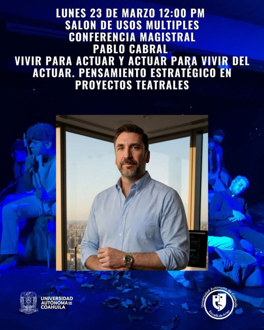 Se contará con la participación de distintos profesionales de las artes escénicas, que compartirán su experiencia viviendo del y por el arte, la conferencia magistral “Vivir para actuar y actuar para vivir del actuar. Pensamiento estratégico en proyectos teatrales”, será impartida por Pablo Cabral, profesor de licenciatura y posgrado e investigador de la Facultad de Artes de la Universidad Autónoma de Querétaro, actor, director y dramaturgo.