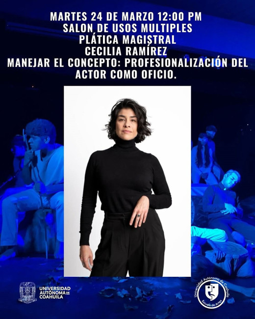 Además, “Manejar el concepto: profesionalización del actor como oficio” por Cecilia Ramírez, creadora escénica, directora de escena y docente originaria de Torreón, Coahuila, ha versionado y dirigido más de diez puestas en escena y espectáculos diversos entre los que destacan Homoempaticus de Rebekka Kricheldorf (2017), Tornaviaje de Diana Sedano (2018), Perderlo todo menos la soledad de Valeria Fabbri.