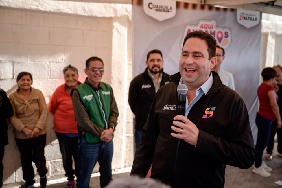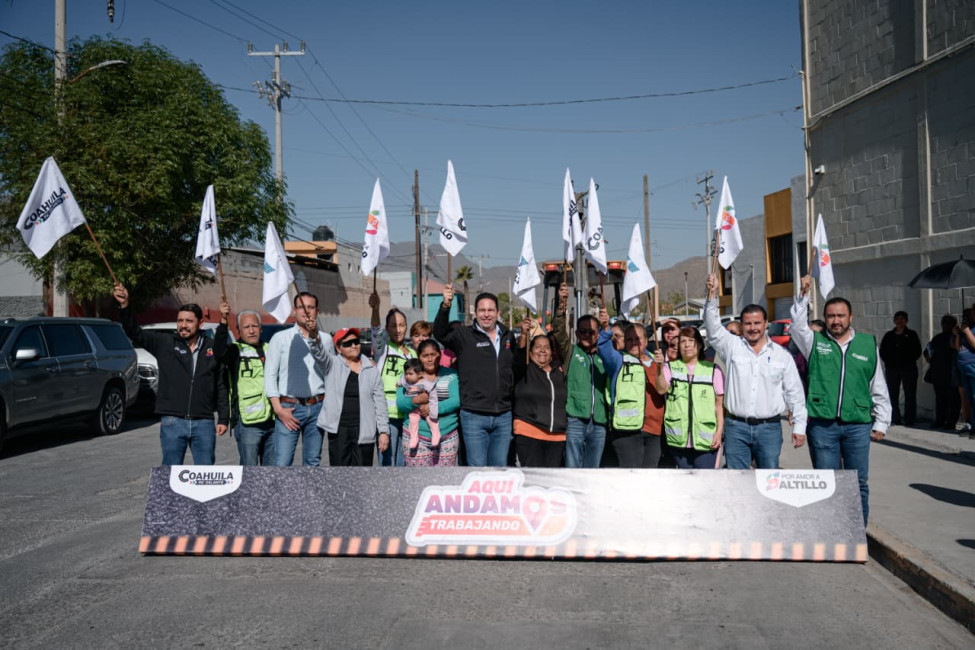 Saltillo, Coahuila de Zaragoza; 13 de marzo de 2026.- El alcalde de Saltillo, Javier Díaz González, dio el banderazo para iniciar con el recarpeteo de la calle Santander, de la colonia Asturias, y adelantó que, con el apoyo del gobernador Manolo Jiménez Salinas, en breve comenzarán más obras sociales para beneficiar a habitantes de este sector poniente de la ciudad.