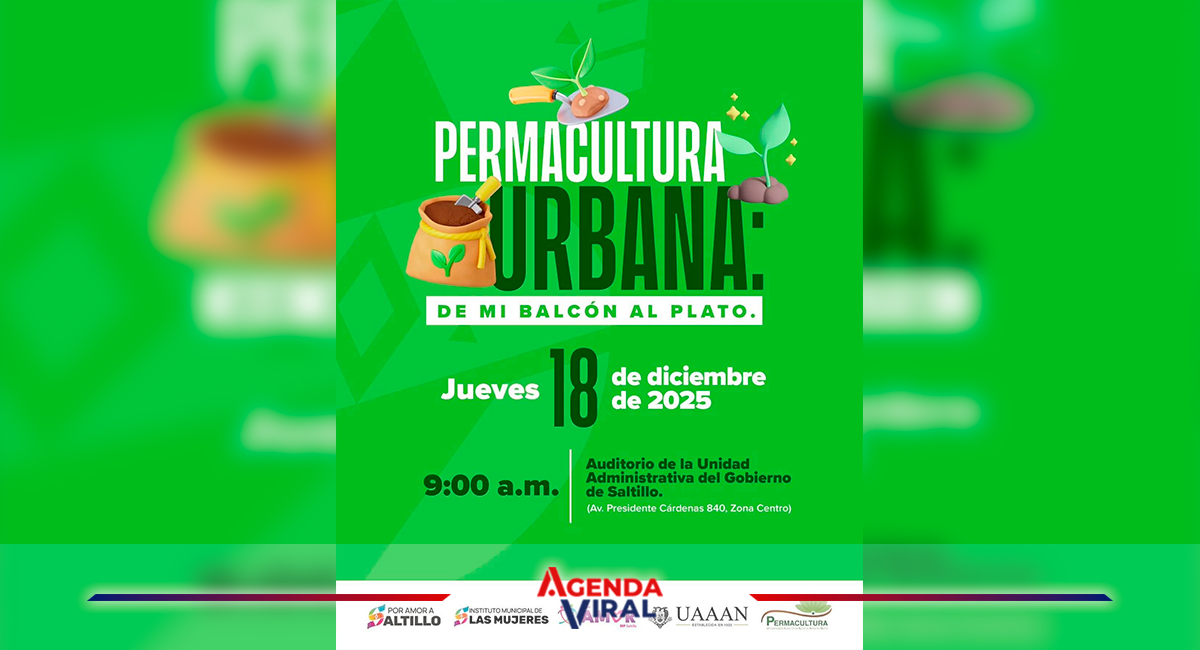 Saltillo, Coahuila de Zaragoza; 16 de diciembre de 2025.- El Instituto Municipal de las Mujeres invitó a las saltillenses a participar en el taller de Permacultura Urbana “De mi balcón al plato” este jueves 18 de diciembre.