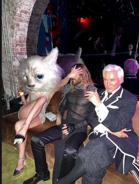 El músico y actor se disfrazó como Choupette, la gata de Karl Lagerfeld, el icónico diseñador de modas que fue homenajeado en Nueva York.