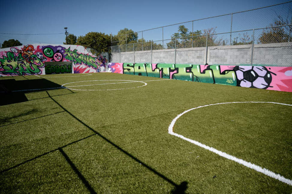 Asimismo se hizo reforestación, instalación de sistema de riego, labor de limpieza y jardinería, así como la elaboración de murales en la cancha y en una de las bardas perimetrales.