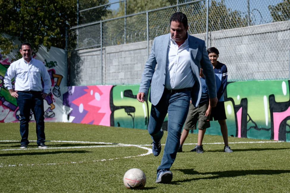 El Director del Instituto Municipal de Planeación, explicó que el proyecto consistió en la rehabilitación de la cancha de fútbol rápido con la colocación de pasto sintético, mejora de muros, instalación de luminarias y malla ciclónica; además se repararon y pintaron los juegos infantiles.