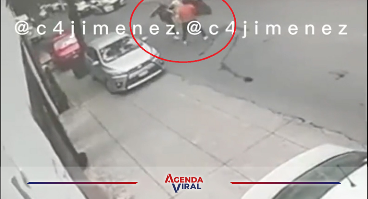 Y es que, de acuerdo a la grabación difundida por Jiménez, Adame es quien se acerca a dos hombres sobre la calle, con quien después de discutir les intenta dar una patada, pero falla en su intento por hacer daño.