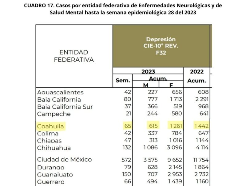 De acuerdo con el Boletín de Vigilancia Epidemiológica de la Secretaría de Salud Federal, la depresión como condición de salud mental sigue afectando a los coahuilenses. A partir de este escrito en 2023, ha crecido un 30,09 por ciento.