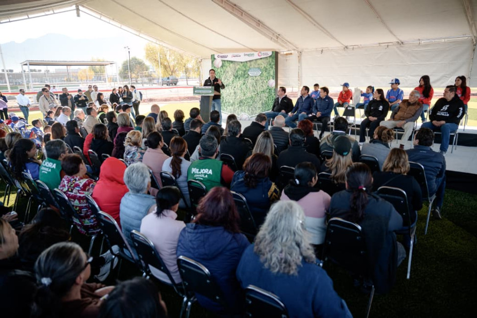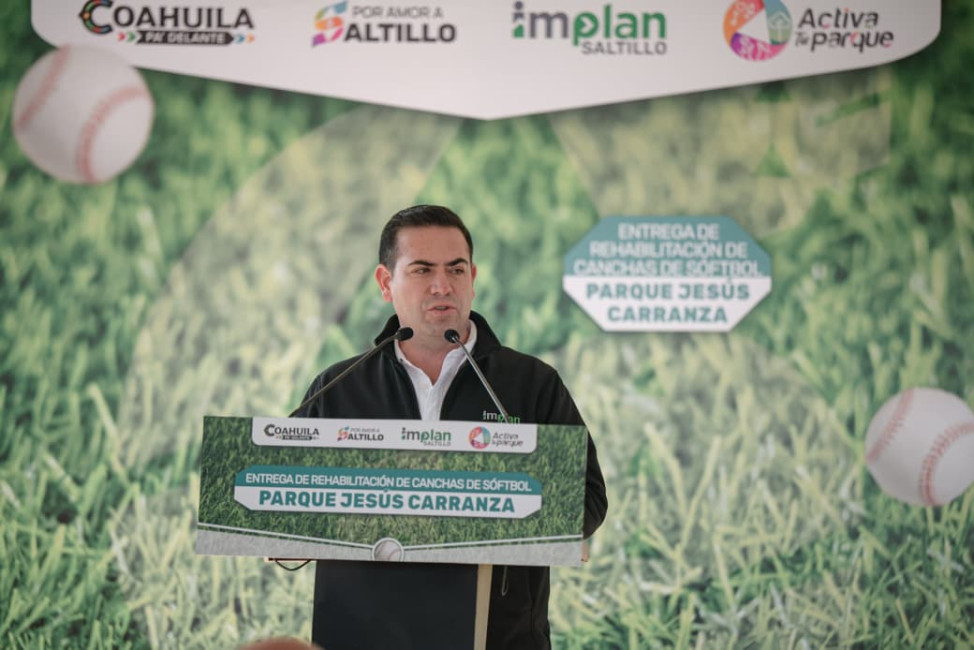 Saltillo, Coahuila de Zaragoza; 22 de diciembre de 2025.- El programa “Activa tu Parque” ha beneficiado hasta el momento a más de 109 mil personas en todos los sectores de la ciudad, así lo dio a conocer el alcalde Javier Díaz González al entregar el proyecto de rehabilitación de dos canchas de sóftbol en el parque Jesús Carranza, al sur de Saltillo.