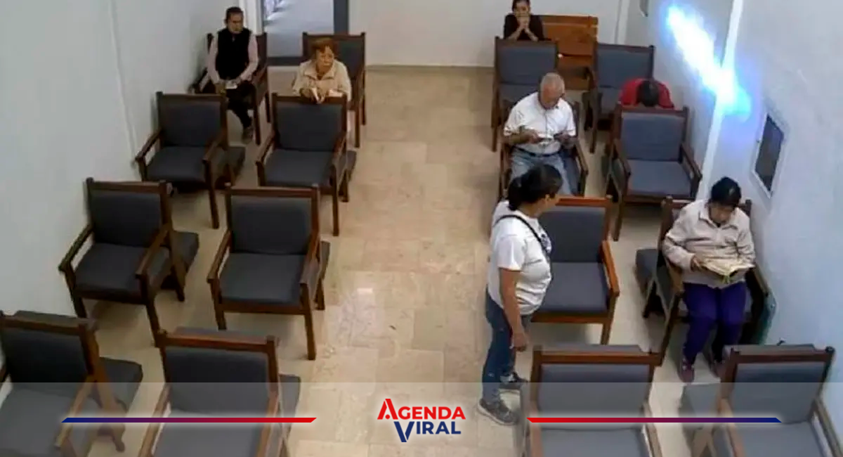 León, Guanajuato — Una mujer asaltó a un grupo de adultos mayores al interior de una capilla de adoración ubicada en el municipio de León, Guanajuato, hecho que quedó captado por una cámara de seguridad instalada en el recinto religioso.