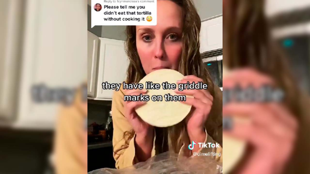 Resulta que un primer video, la joven contó que se comía las tortillas sin cocinarlas. Entonces usuarios le recomendaron calentarlas unos cuantos segundos.