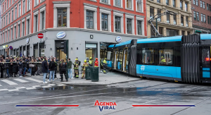 Tranvía descarrila y se empotra contra tienda dejando cuatro heridos en Noruega