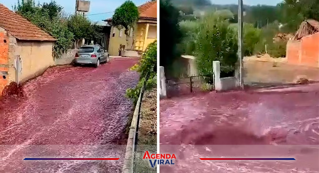 [VIDEO] Las calles de un pueblo portugués se llenan de un río de vino tinto
