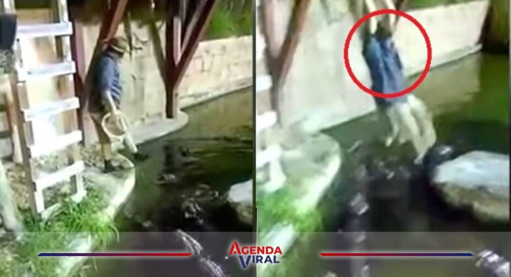 Un acto salió mal y provocó la peligrosa caída de un hombre a un estanque de cocodrilos; su cuerda se rompió